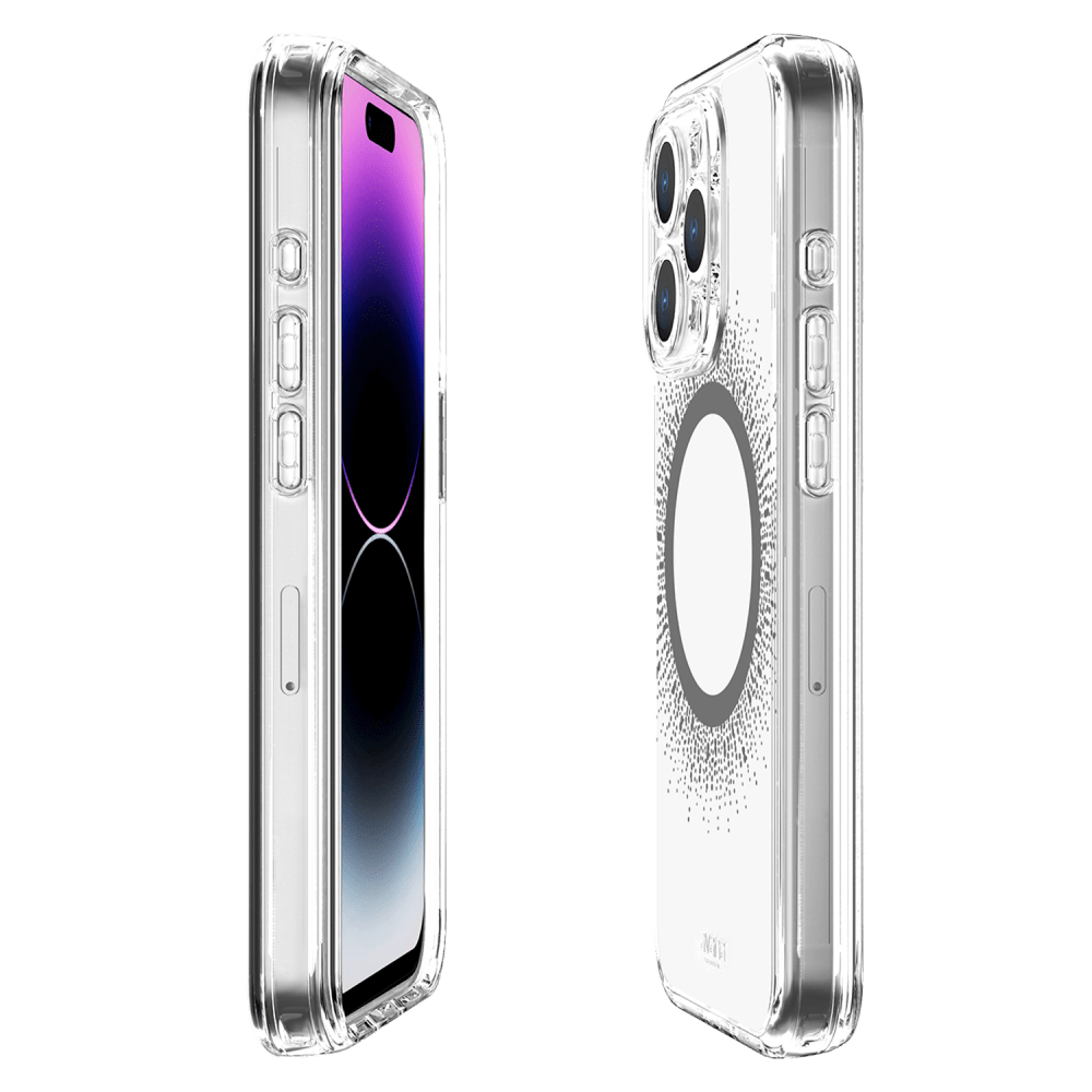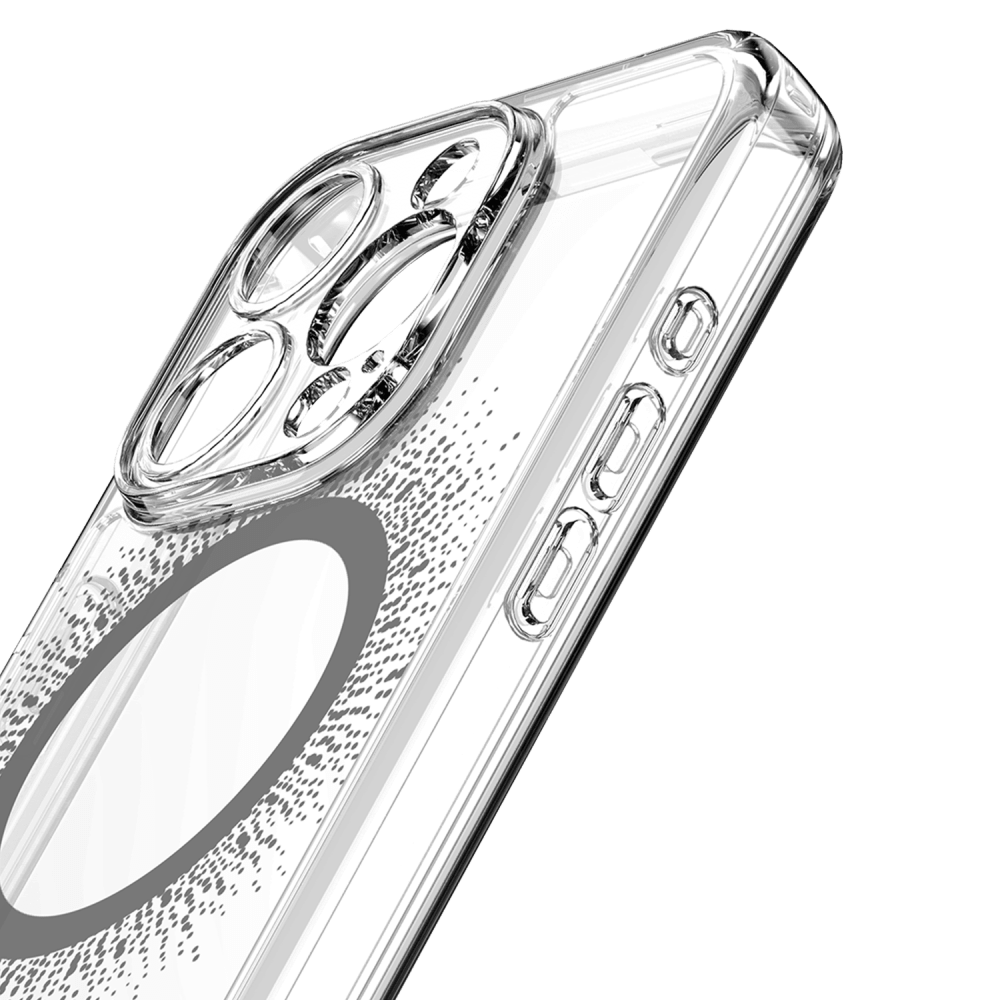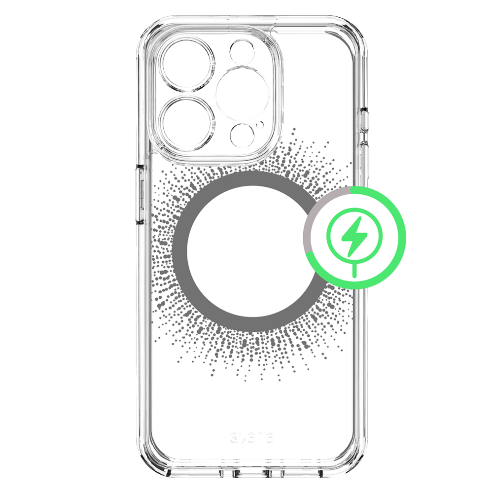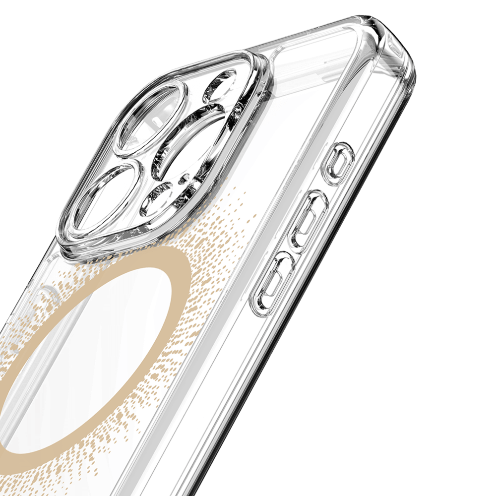 Love MagSafe but hate the ring? We've got you covered! We added beautiful metallic foil designs to this clear case that shine and conceal the magnet ring with the avana creations aura Clear Magnetic Phone case! Our case combines style and protection effortlessly. It's super flexible and lightweight, so you won't even notice it in your pocket. It can handle drops, scratches, and cracks like a champ. Plus, the raised edges make sure your screen and camera stay safe from any potential damage. This clear phone case has a built-in magnetic ring that works smoothly with magnetic leather wallets, Qi-certified wireless chargers, magnetic car holders, magnetic battery banks, and more. No more fumbling around just snap it on and you're good to go. We've packed in serious shock absorption technology and reinforced corners to keep your phone safe from accidental drops and impacts. Plus, our ultra-responsive buttons ensure you won't lose that tactile feel, making navigation a breeze. Sustainably-made, ultra-protective, and stylish cases designed for lifestyle-conscious customers. Enjoy military drop protection up to 10 feet, self-healing, and anti-scratch features. Show off your phone's sleek design while keeping it safe with avana creations. It's fashion, style, and functionality all rolled into one!