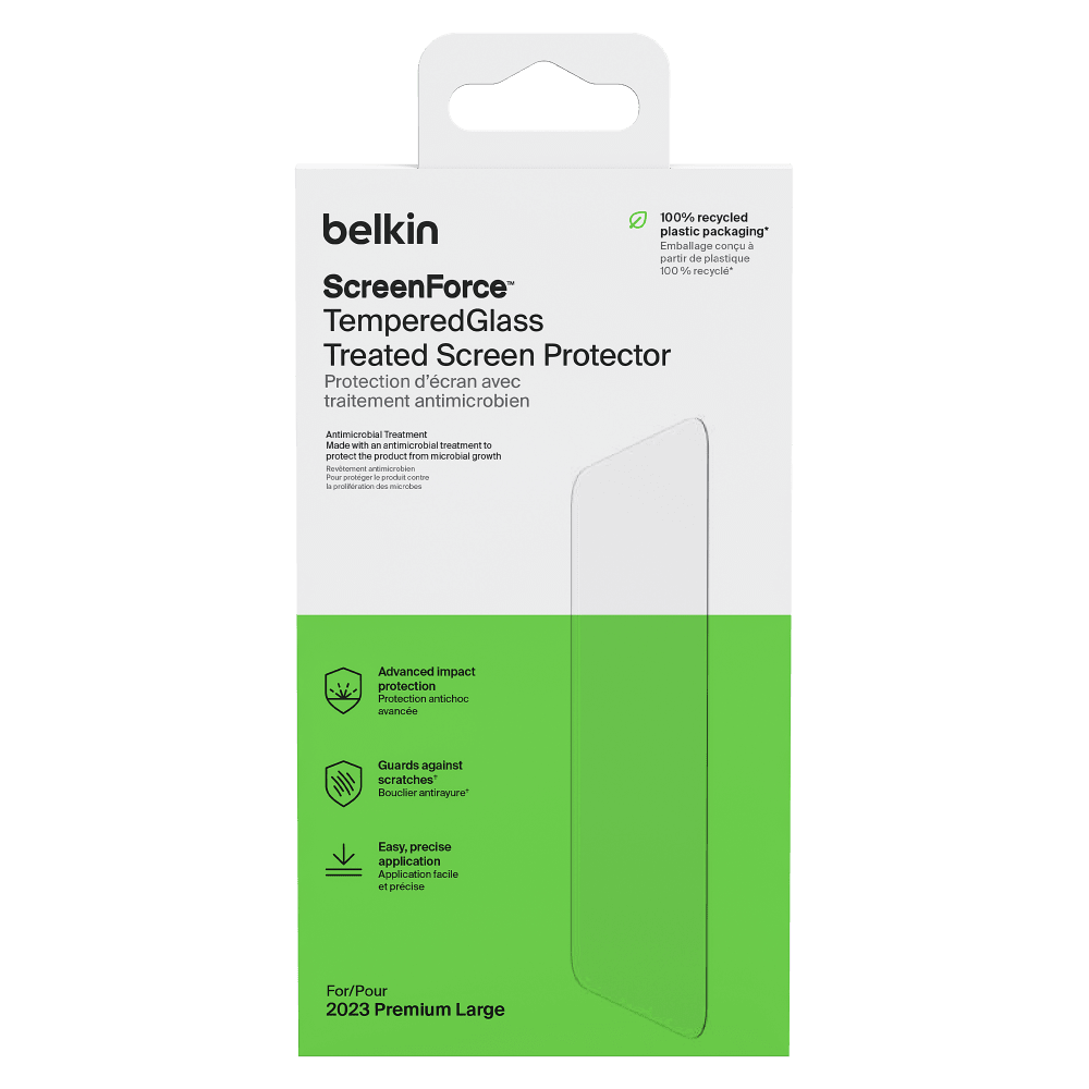 Protect your mobile devices with Double Strengthened Protection. Belkin's top-of-the-line screen protector uses first-of-its-kind UltraGlass. This double strengthened glass is tested and proven to have up to 2 times better drop protection than tempered glass, and 2 times better daily wear and tear.UltraGlass with German-engineered technology, powered by Schott Innovation, delivers the next generation of screen protection for your devices. UltraGlass is double strengthened for ultra-impact protection, minimizing the damage from drops and impact. The glass contains an antimicrobial treatment to protect the product from discoloration and degradation, without sacrificing touchscreen response or clarity.With double ion-exchange strengthened glass that's twice as strong as standard tempered glass. Our UltraGlass screen protector provides superior resistance and ultimate protection against everyday scratches, scuffs, bumps and impacts. The top layer is tested and proven to provide the highest level of scratch protection available.