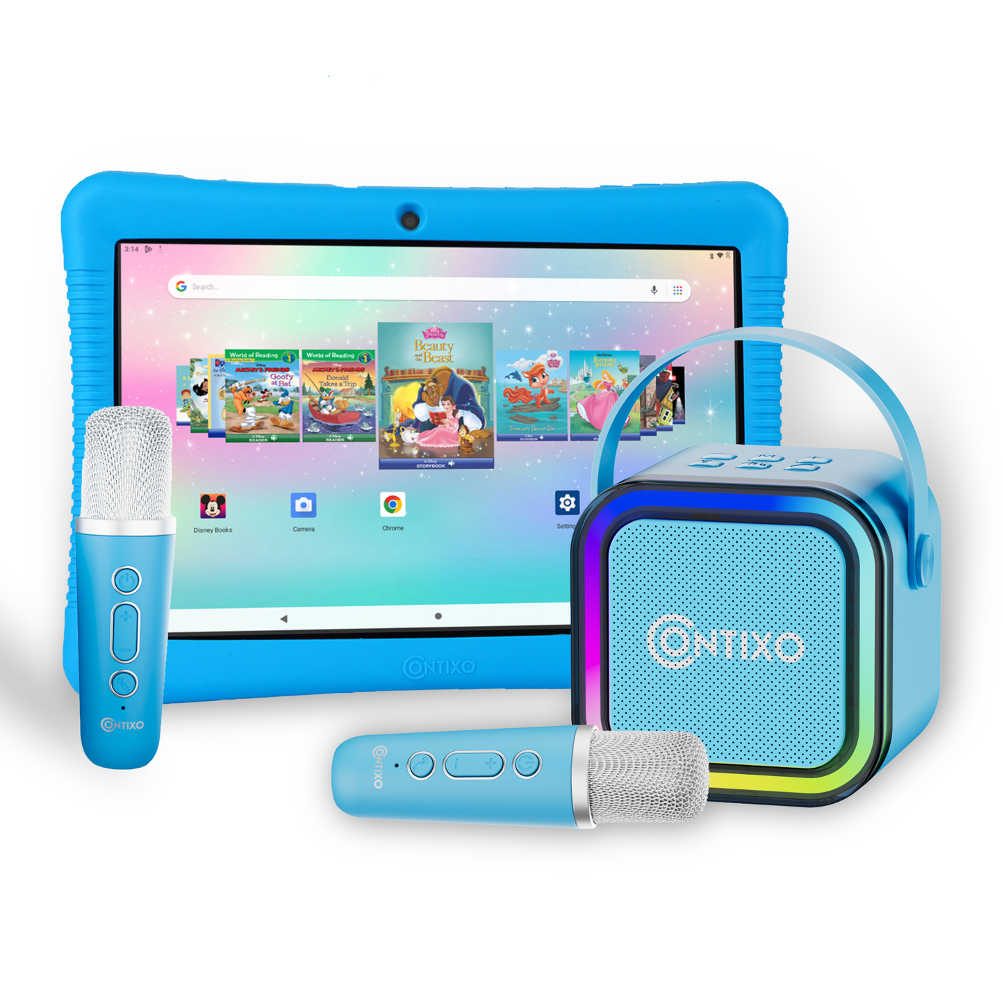 Give your child the perfect blend of fun and education with the Contixo Kids Bundle, featuring our 10-inch 32GB HD Kids Tablet and Bluetooth Karaoke Machine with two microphones. Whether your child is learning, playing games, or singing their favorite songs, this bundle offers endless entertainment!