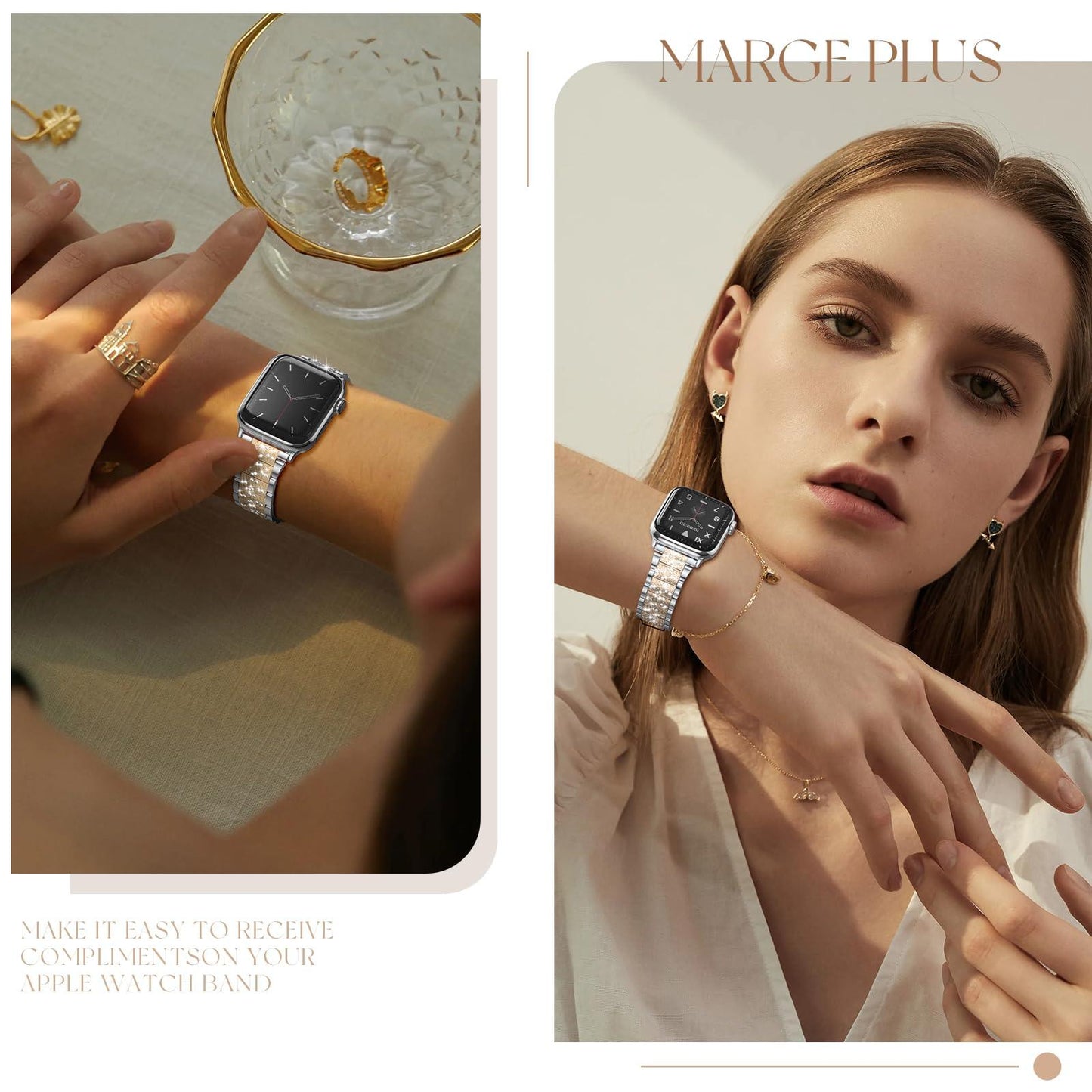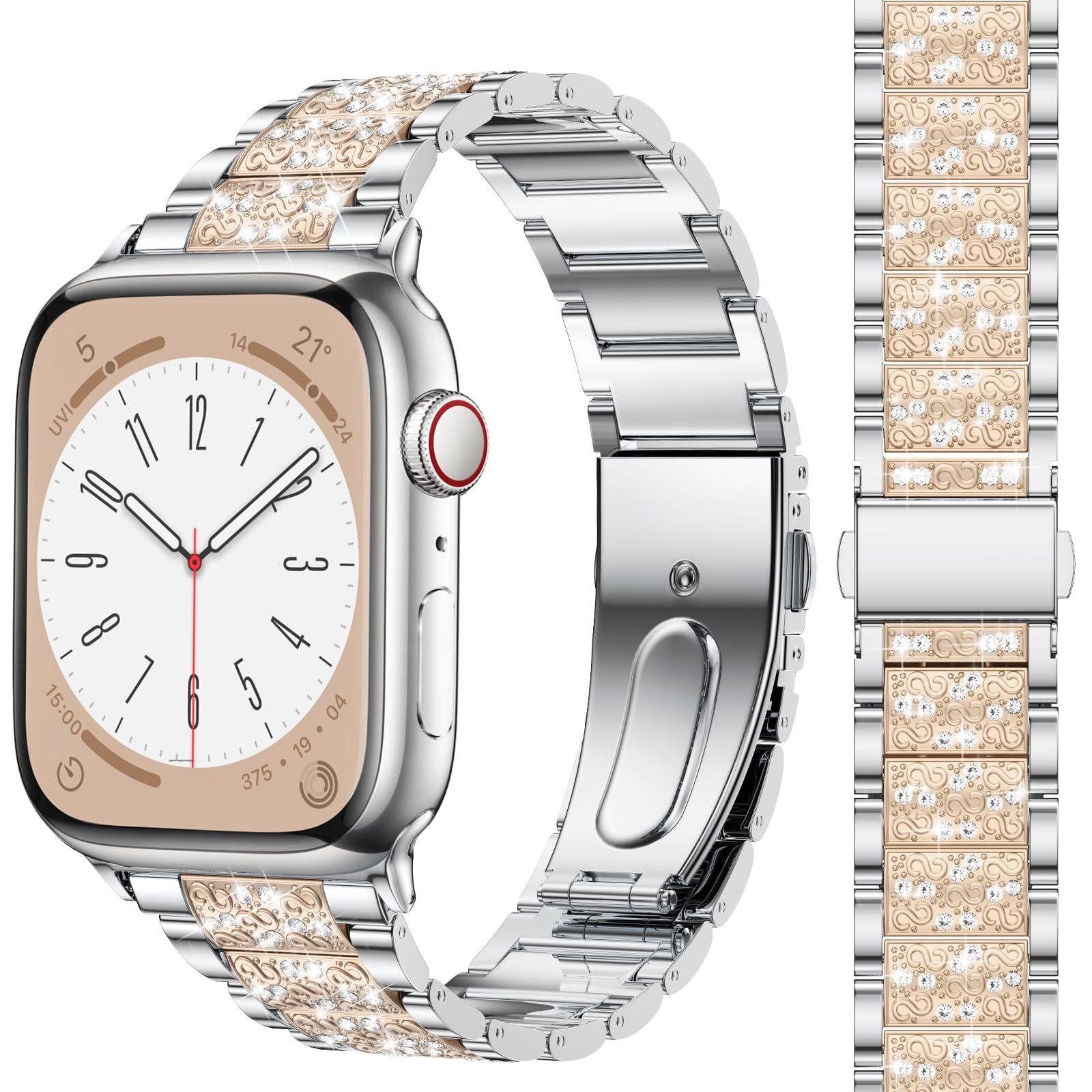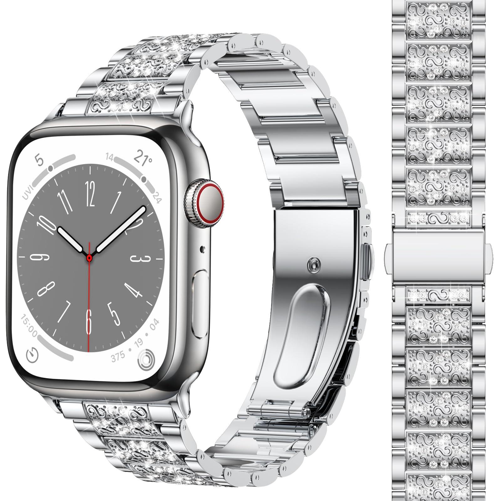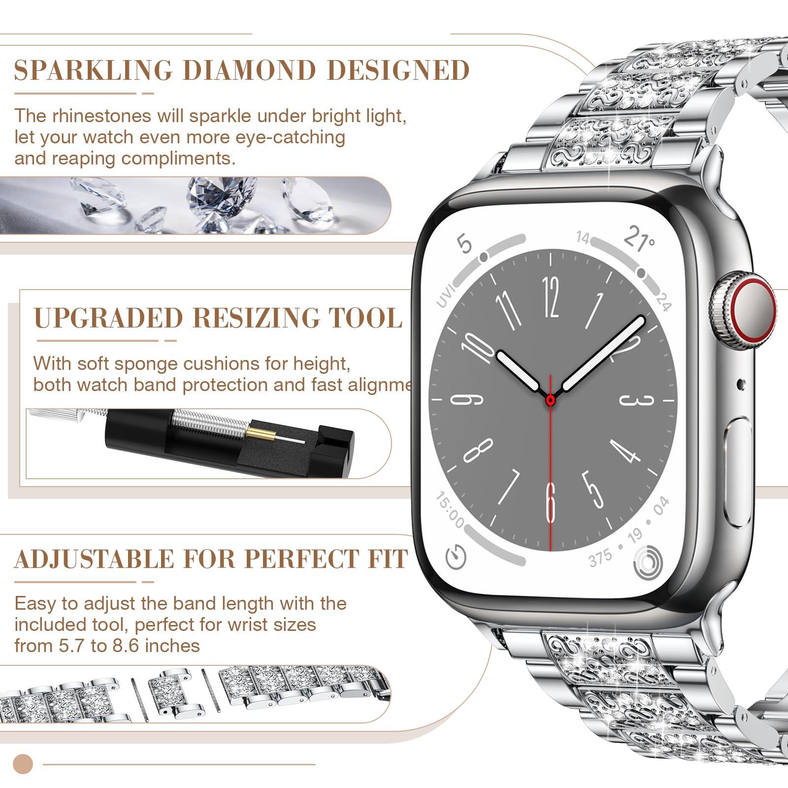 - Premium shiny rhinestones are firmly set on the iWatch Bling band by hand, don't worry about the diamonds falling off. The rhinestones will sparkle under bright light, let your watch even more eye-catching and reaping compliments.