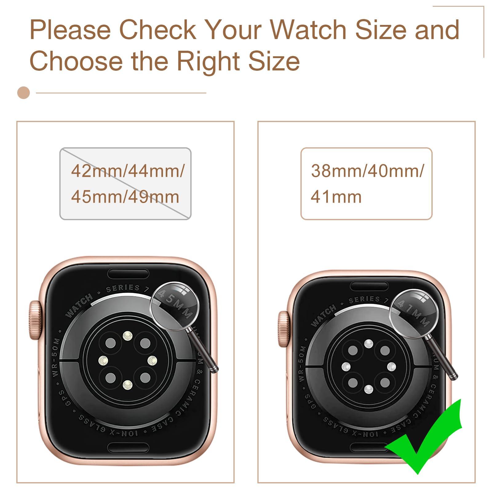- Bling band compatible with Apple Watch Band 38mm 40mm 41mm Series 8/Series 7/Series 6/Series 5/Series 4/Series 3/Series 2/Series 1/SE, suitable for wrist size of 5.7-8.6 inches. Band weight: 3.42 oz. Note: Please check the size shown on the back of the watch to purchase the correct size.