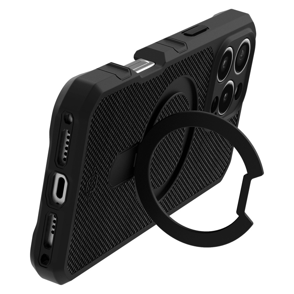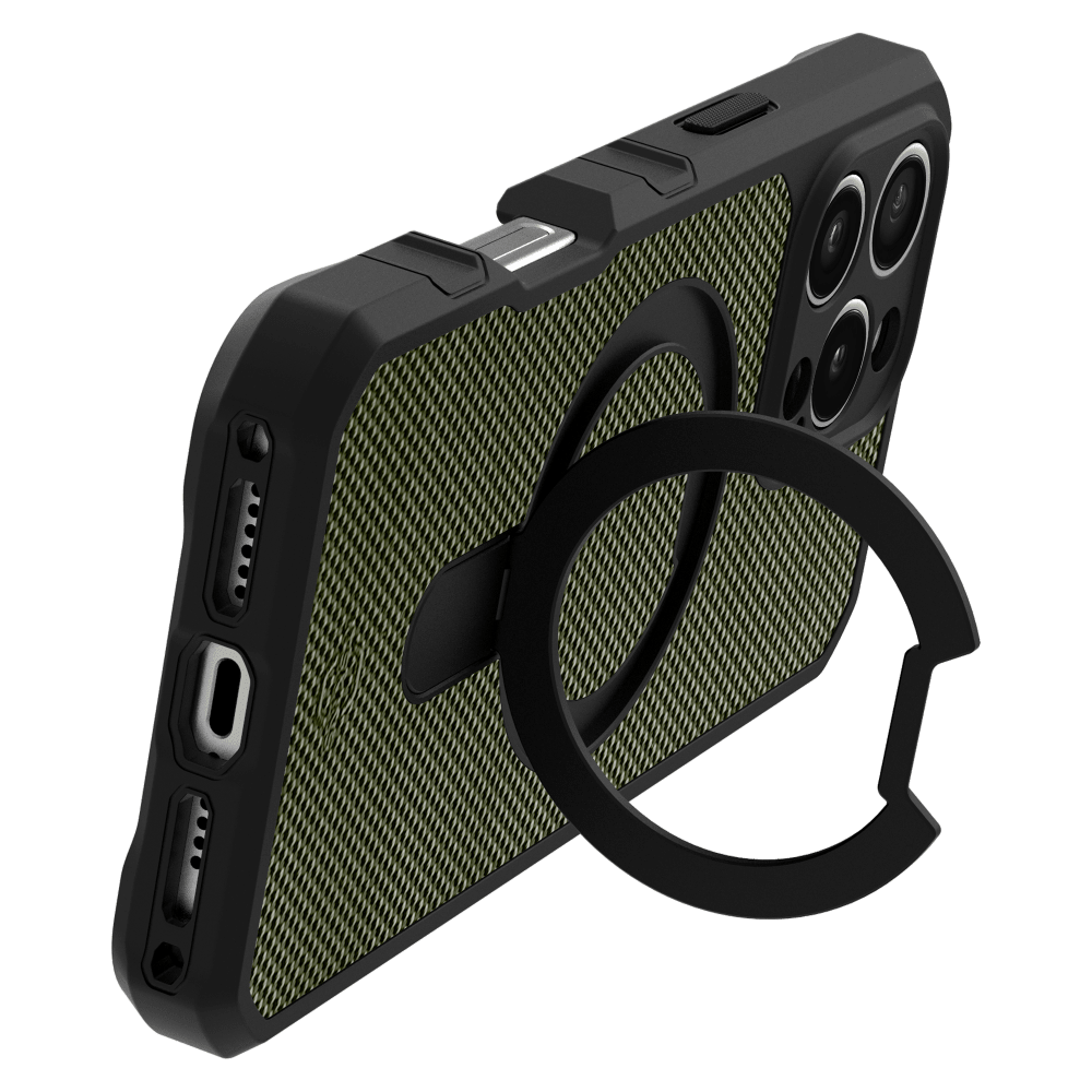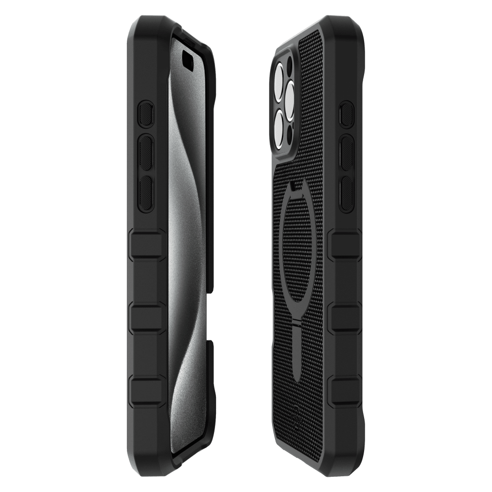 FORCE_R NYLON is the ultimate case with numerous advanced features. It is loaded with extra strong magnets embedded around a folding MagSafe-compatible stand to hold to any metal surfaces. Enhanced with AI technology, it offers superior impact absorption around the interior perimeter, protecting you