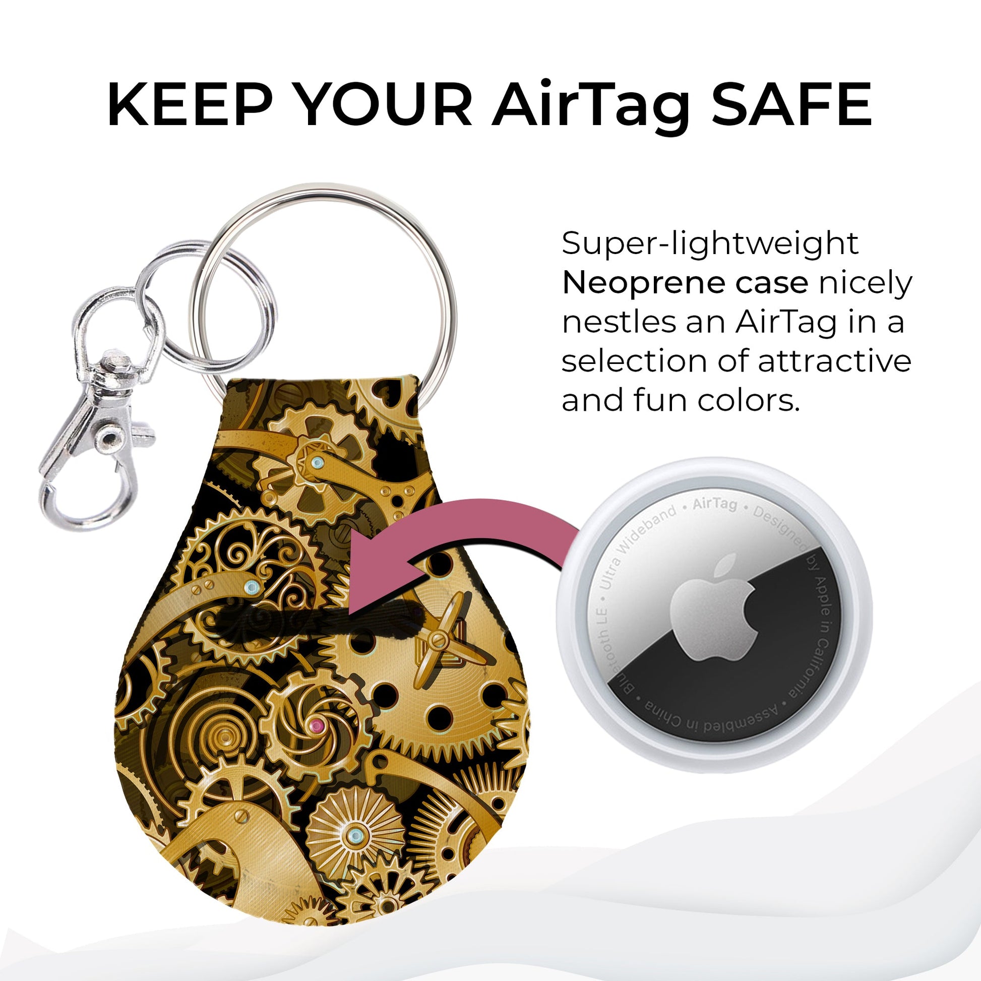 Jolitee Neoprene AirTag Compatible Case Keychain – Durable & Stylish Holder with Secure Ring and Clip, Compatible with Apple AirTag (Gold Gears) by Jolitee