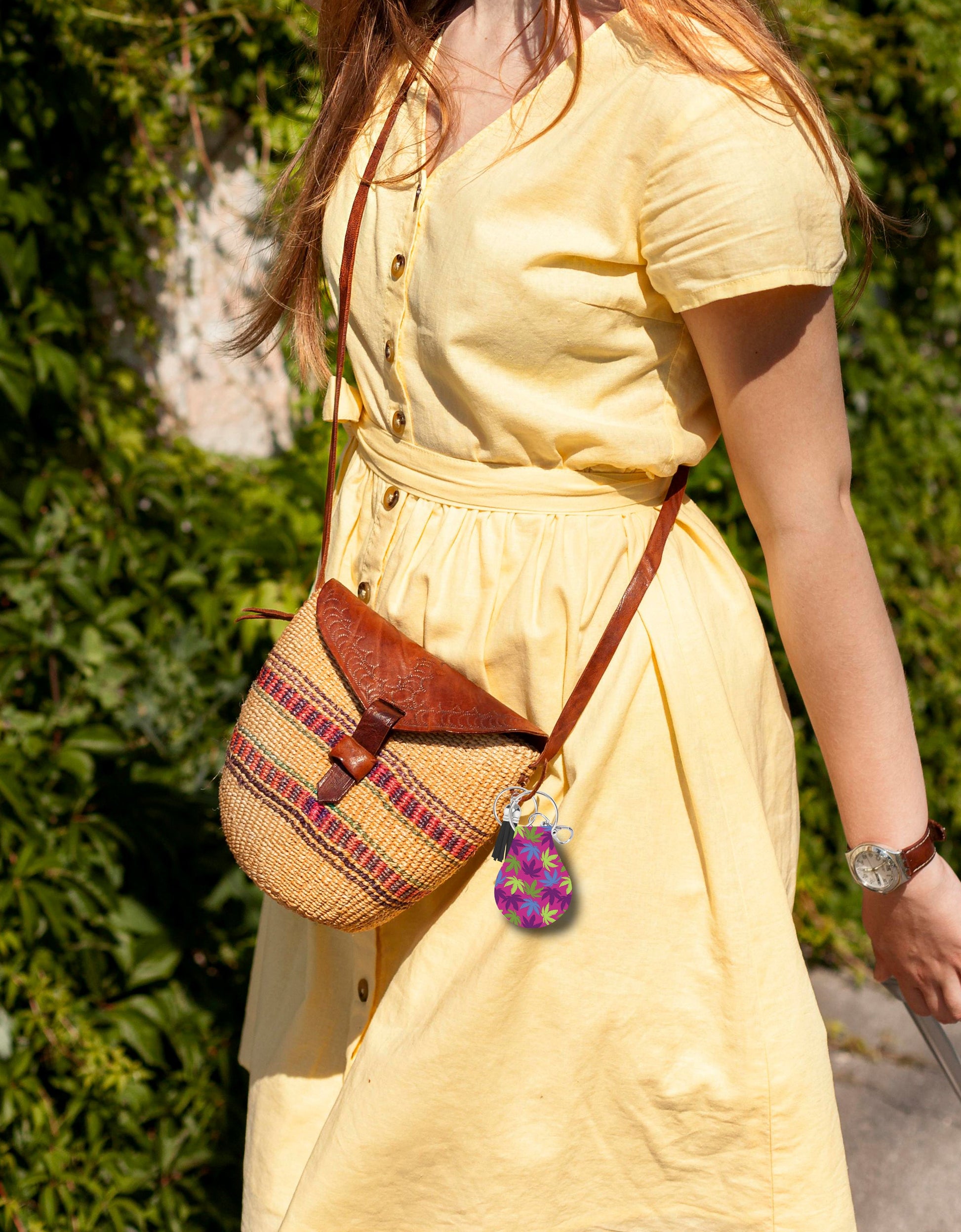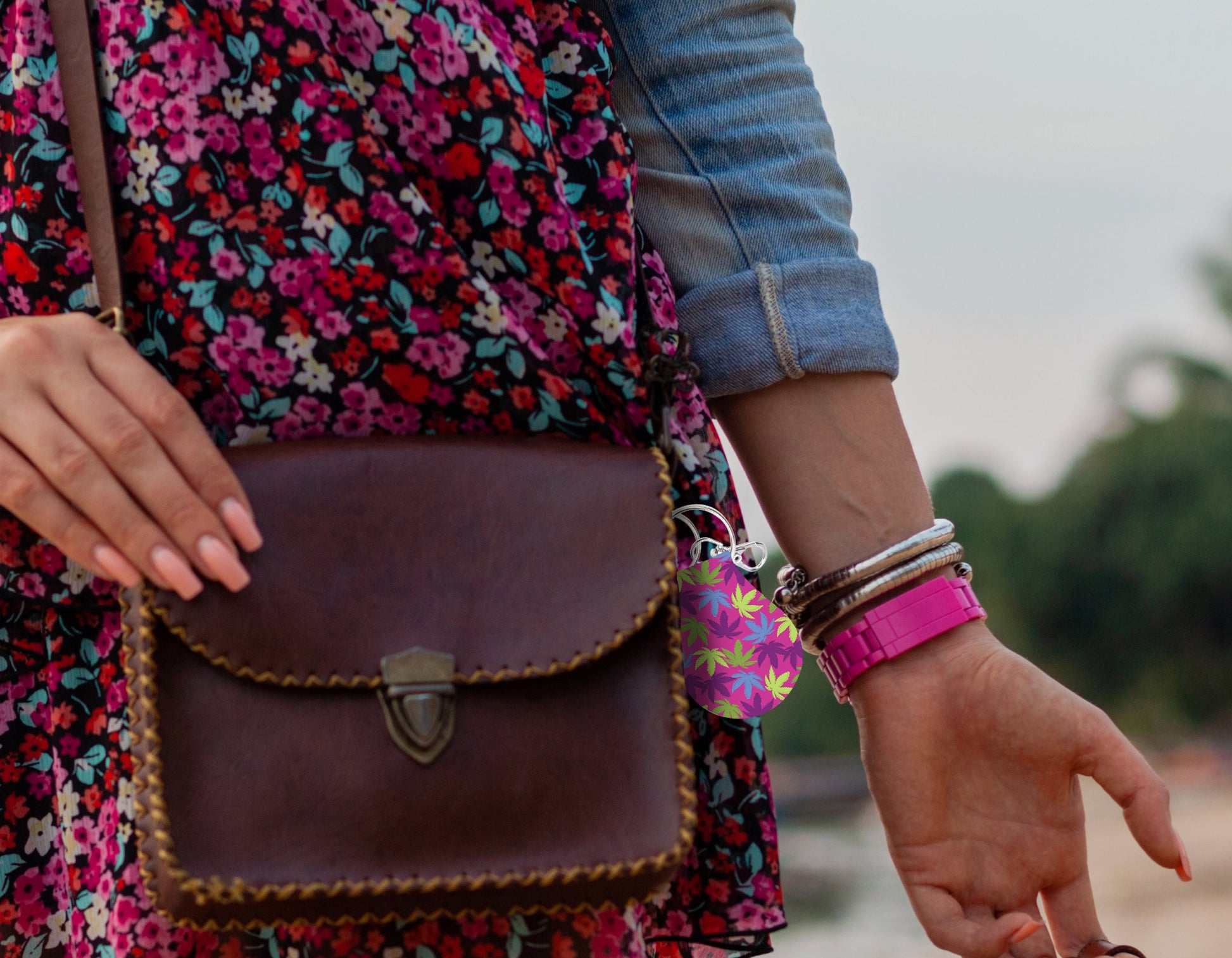 Jolitee Neoprene AirTag Compatible Case Keychain – Durable & Stylish Holder with Secure Ring and Clip, Compatible with Apple AirTag (Leaves Doodle) by Jolitee