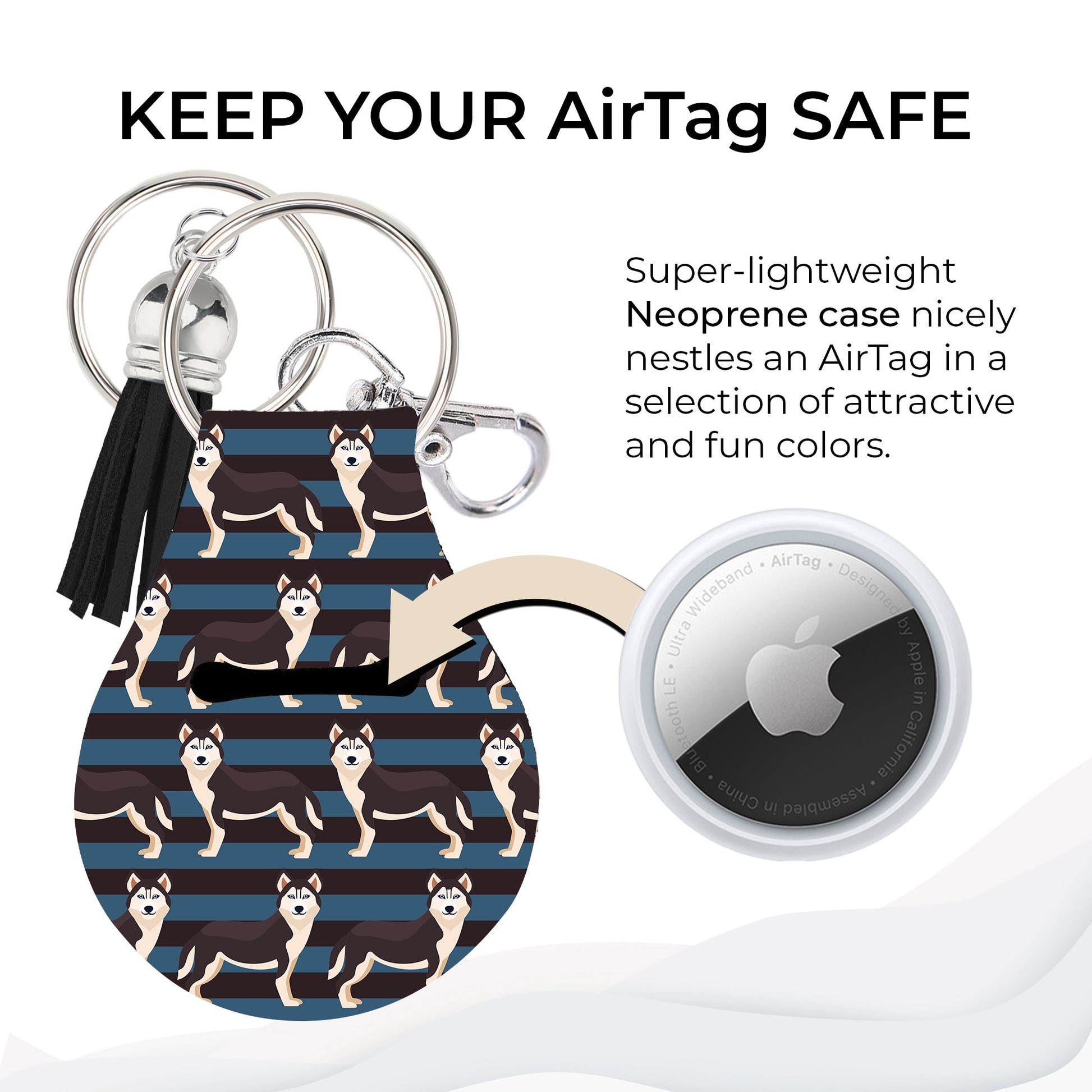 Jolitee Neoprene AirTag Compatible Case Keychain – Durable & Stylish Holder with Secure Ring and Clip, Compatible with Apple AirTag (Siberian Husky) by Jolitee