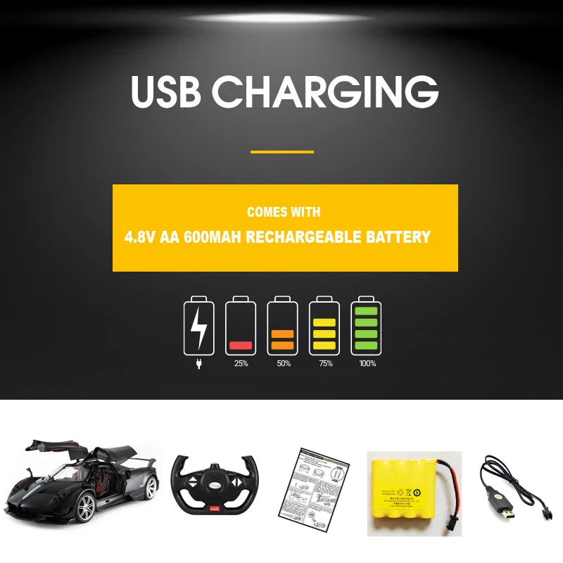 - Officially licensed Pagani Huayra BC RC car model, 1:14 scale.