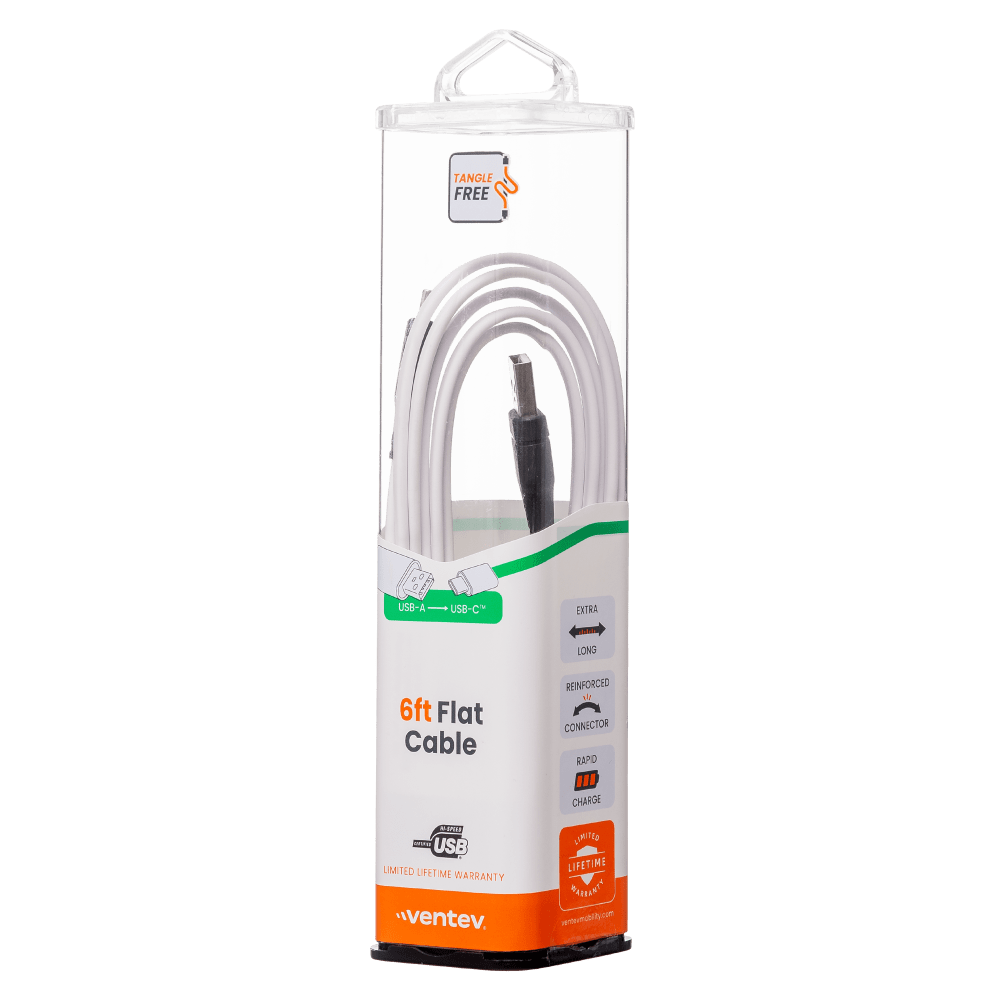 Ventev Chargesync Flat USB A to USB C Cable 6ft by Ventev